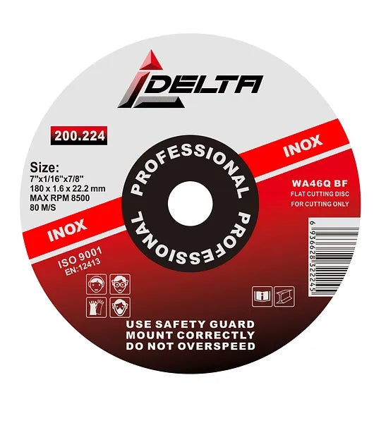 El Disco de Corte INOX 7" x 3MM marca Delta está diseñado para cortar acero inoxidable y otros metales con precisión y rapidez, siendo una herramienta esencial en trabajos de construcción y metalurgia.